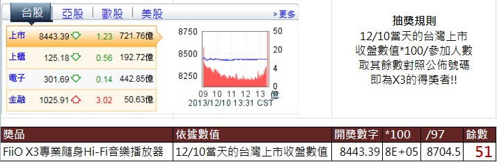 有興趣的朋友可以在收盤的時候先算看看,我們在當天18:00前會公布名單並通知得獎者,如中獎的話也請盡快跟我們連絡喔!!