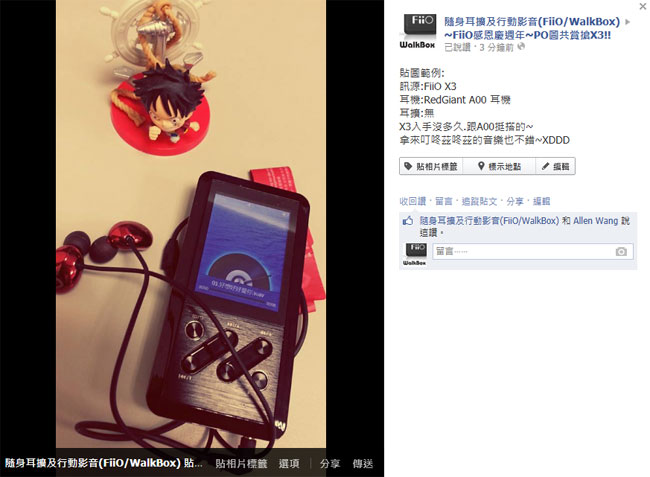 請在粉絲活動頁留言直接po圖片,圖片內容需含FiiO產品。