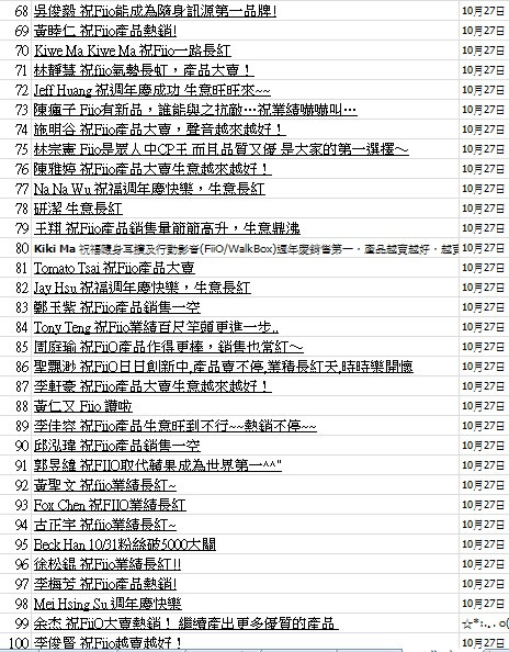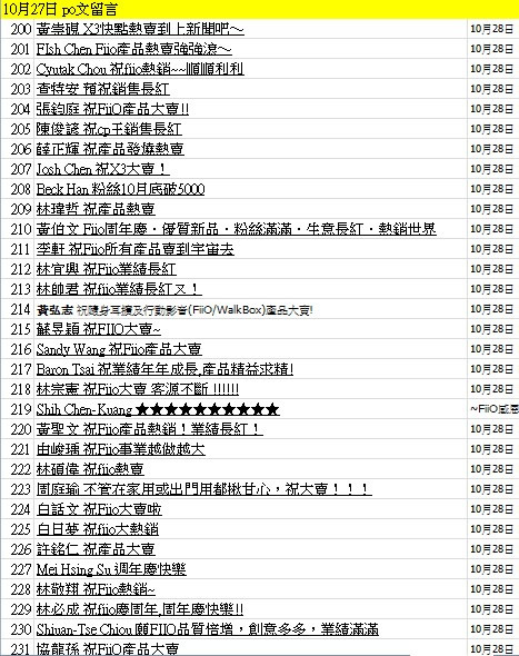1.參加資格為在"10/27-10/31 期間"在"活動貼文"下留言(每篇一帳號限留一則)留言名單請見下面: