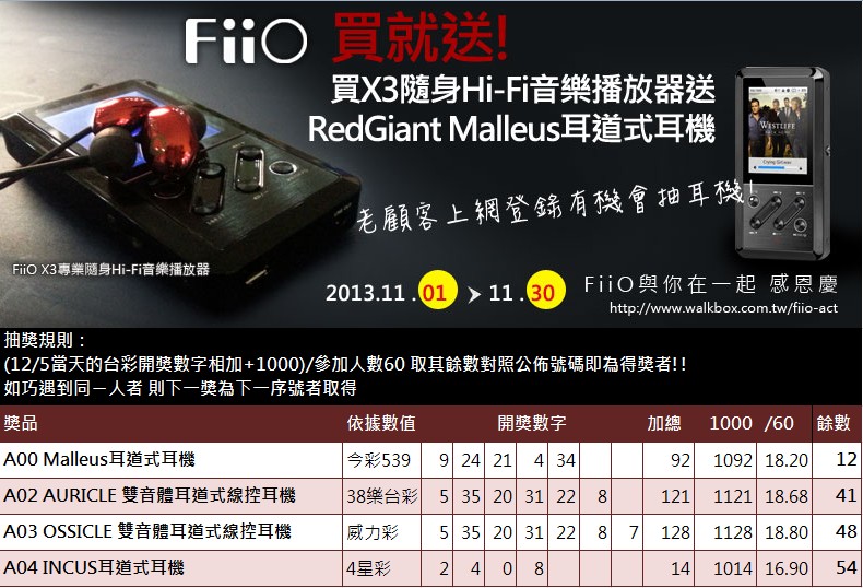 凡曾購買FiiO耳擴的發燒友們在活動期間內登錄資料即可參加抽獎。